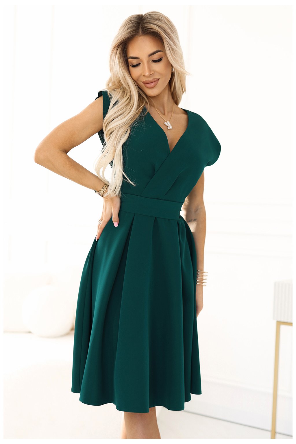 348-11 Voľné šaty s výstrihom SCARLETT - zelené