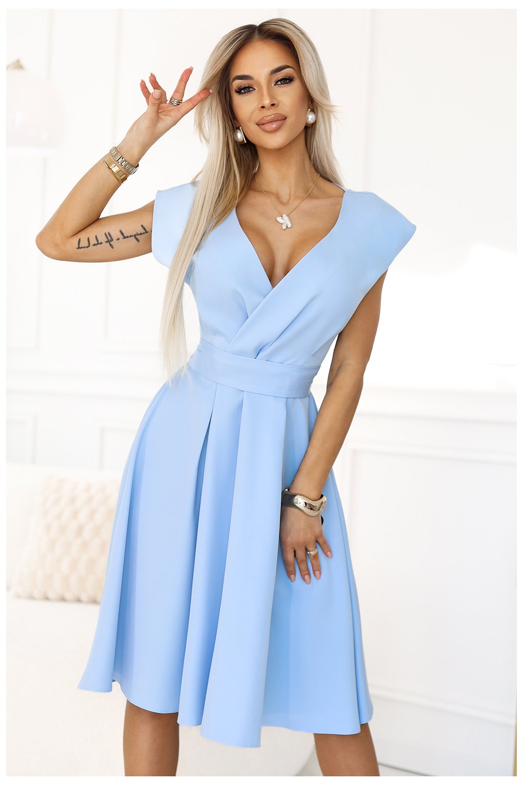 348-12 Voľné šaty s výstrihom SCARLETT - svetlomodré