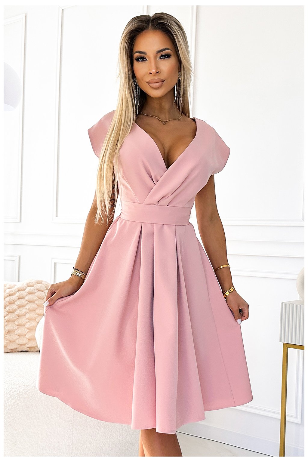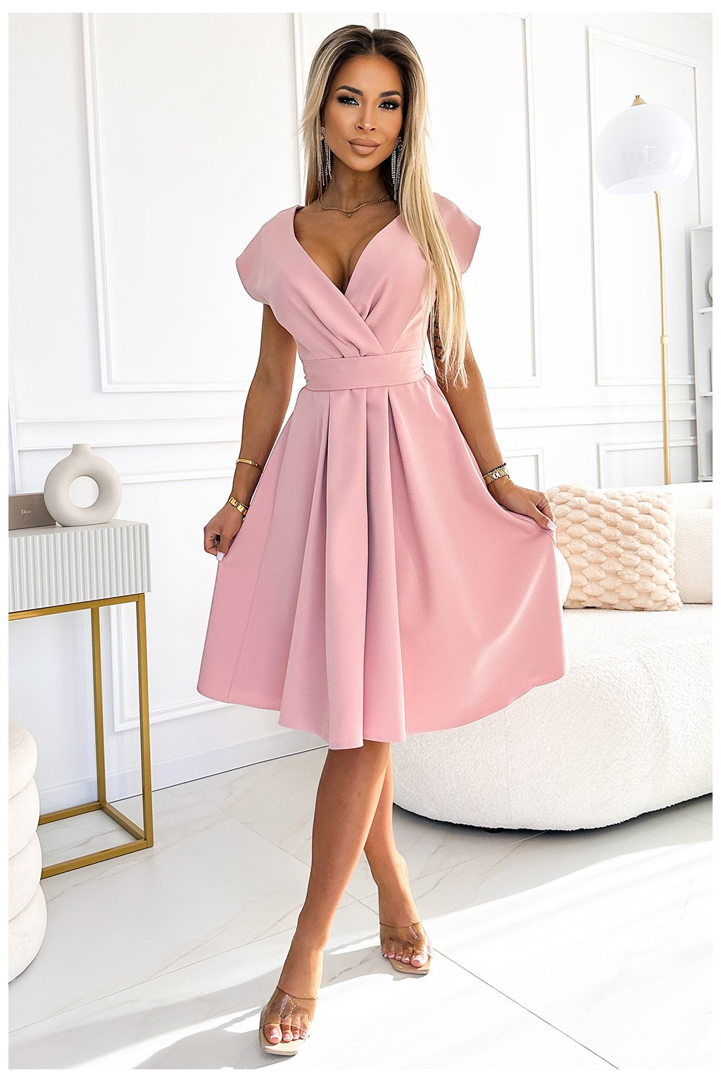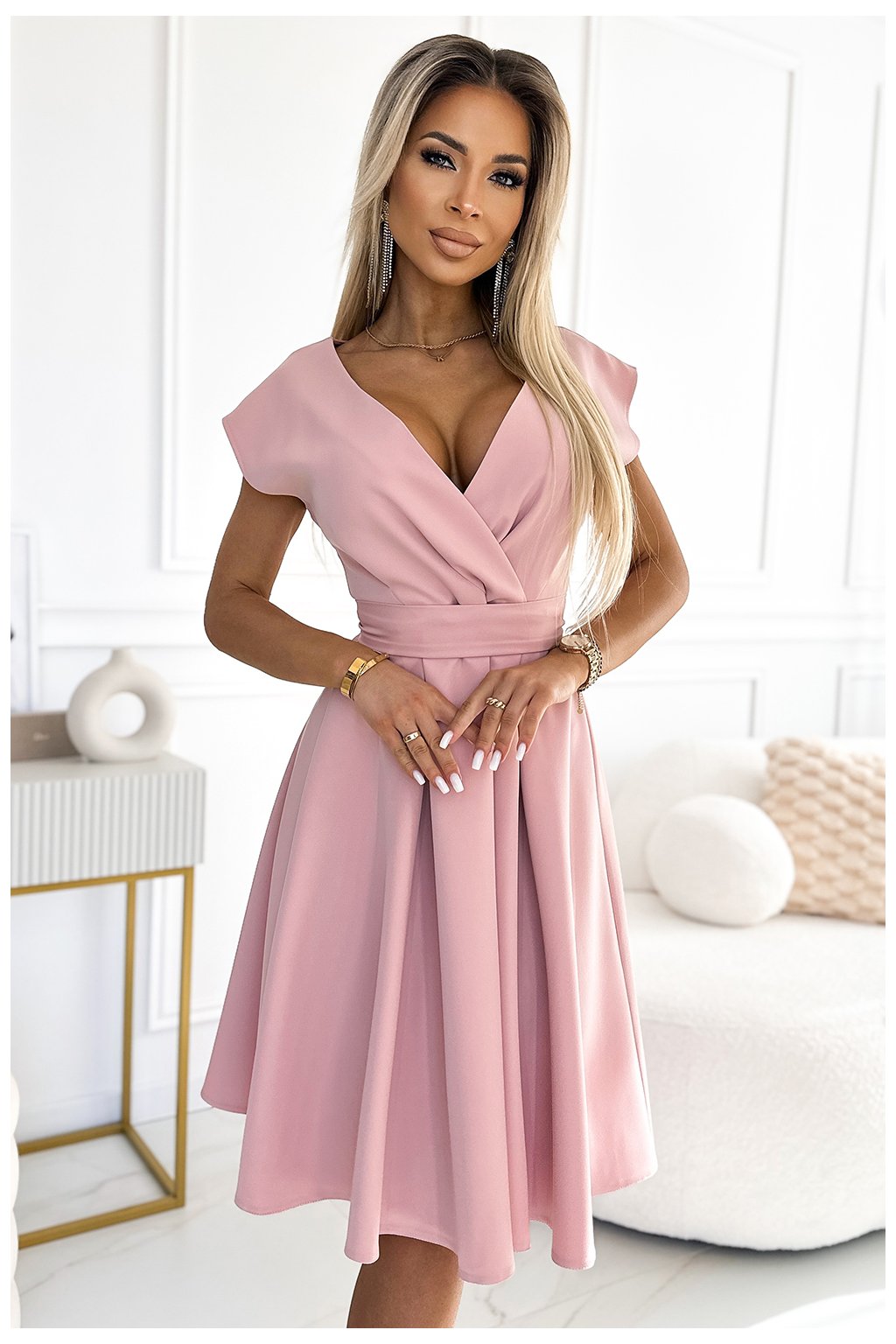 348-9 Voľné šaty s výstrihom SCARLETT - púdrovo ružové