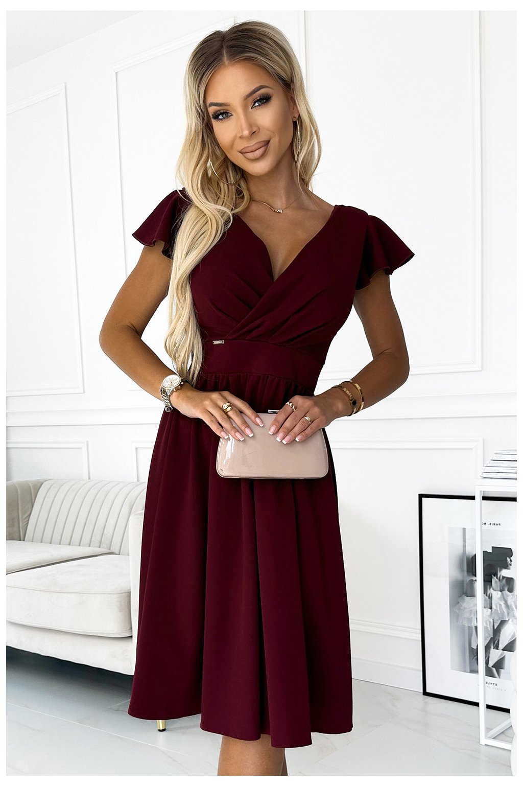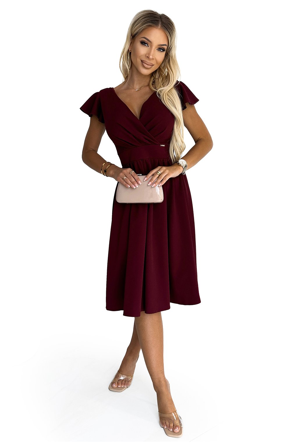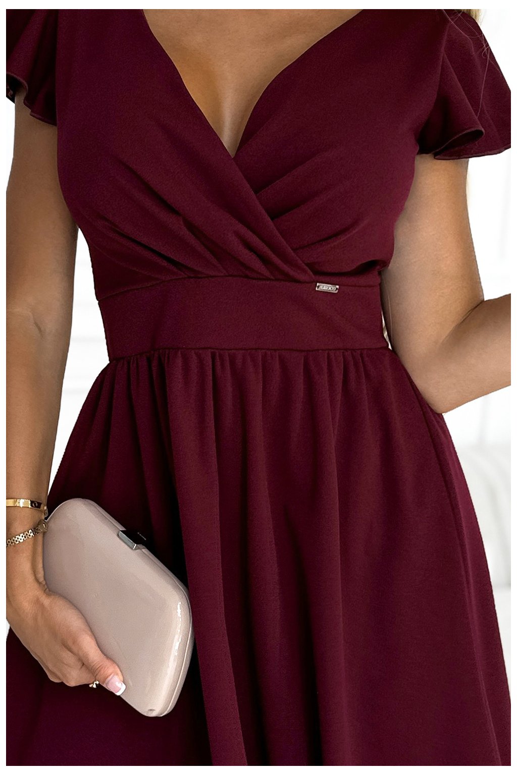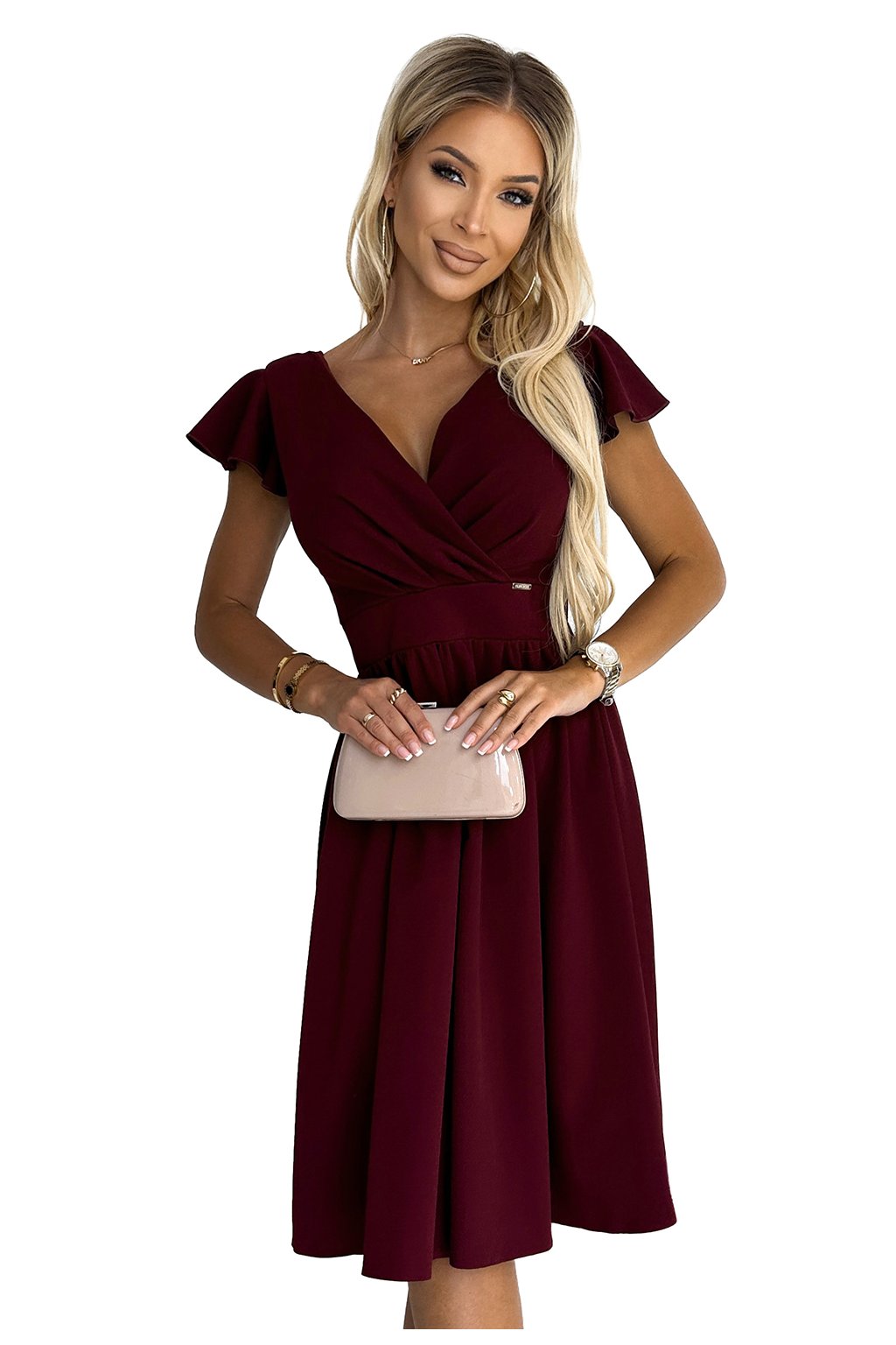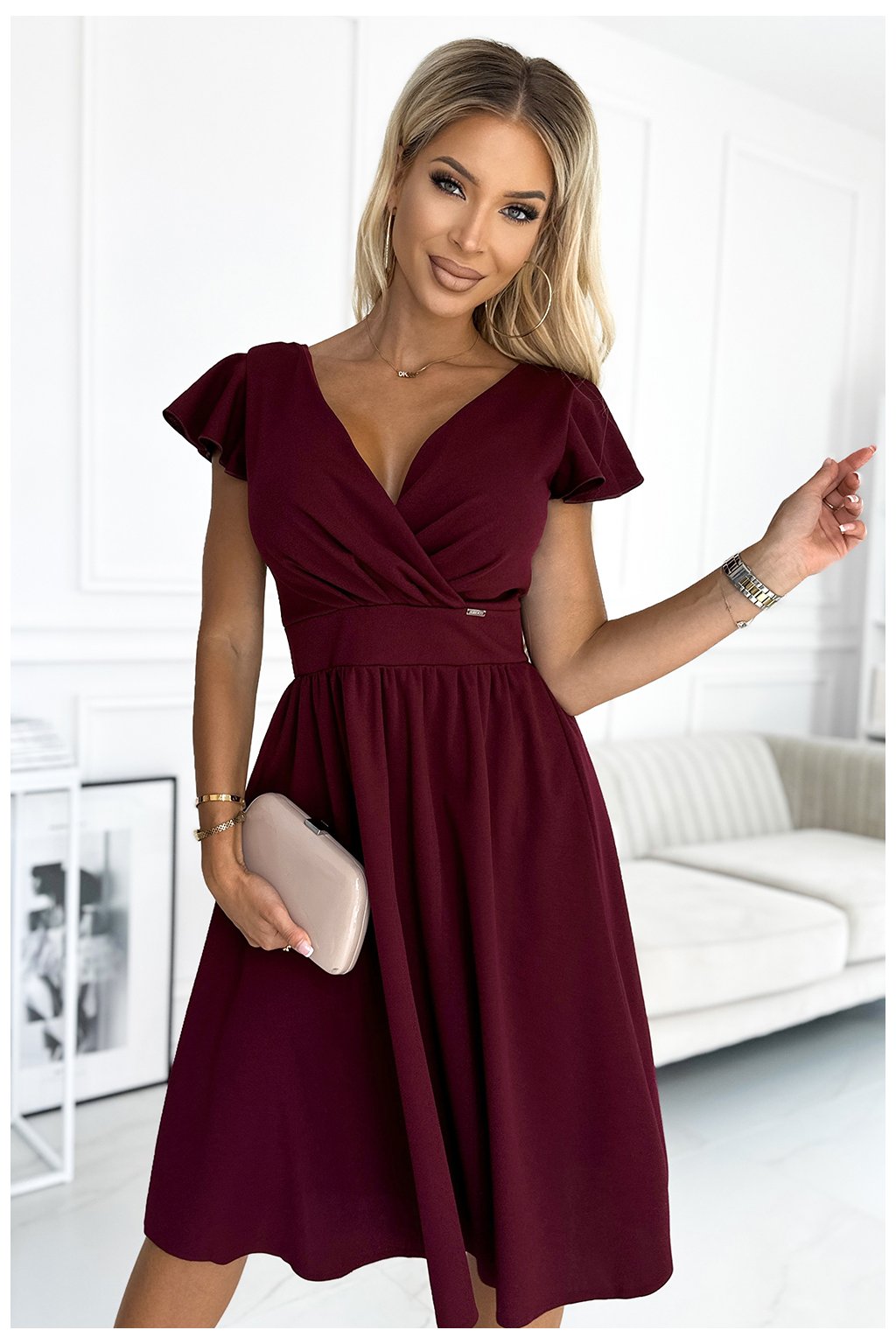 425-4 Elegantné šaty s výstrihom a krátkymi rukávmi MATILDE - bordové
