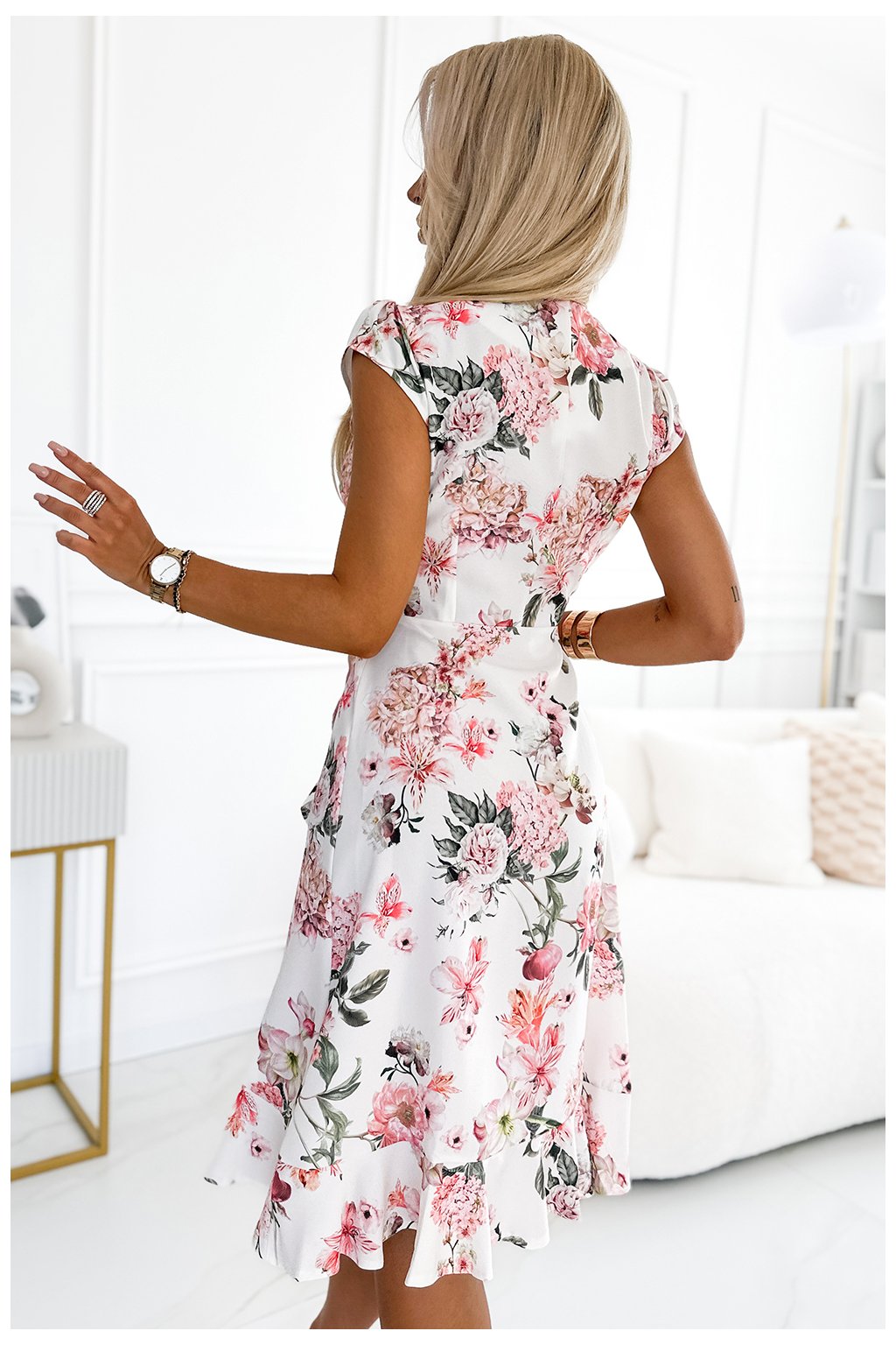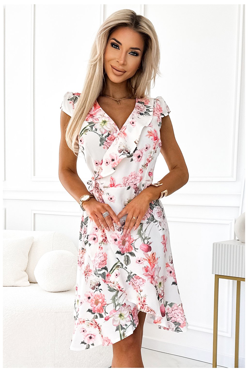 544-1 Zavinovacie šaty s volánmi - broskyňové kvety
