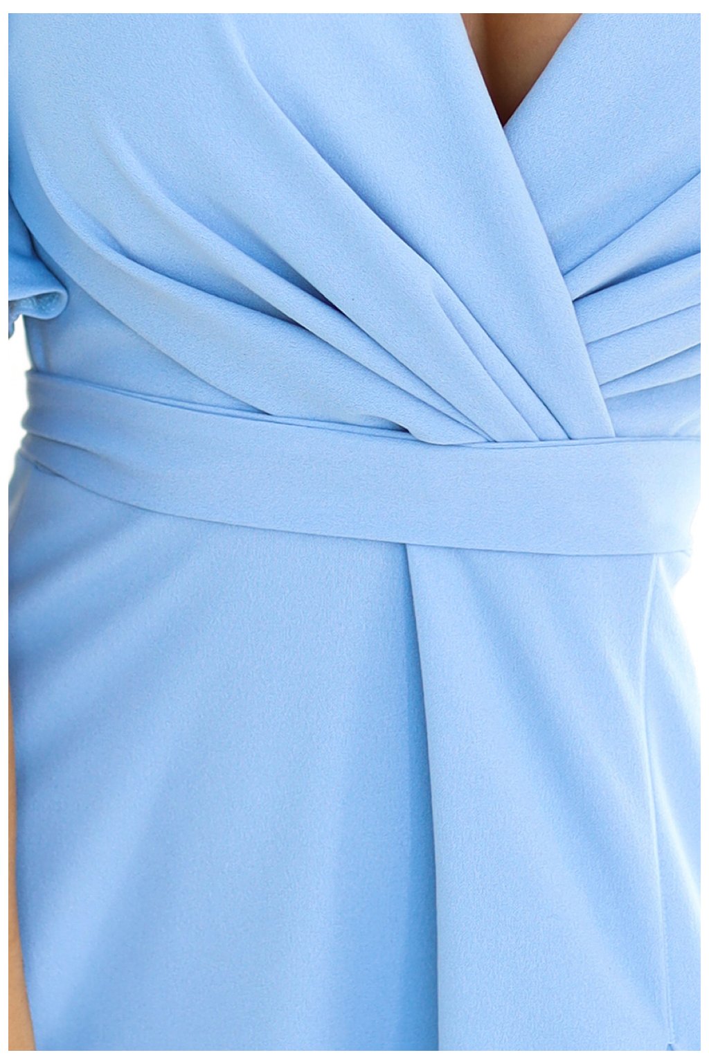Elegantné dlhé šaty s rukávmi a výstrihom. Značka: Numoco. Materiál: 95% polyester, 5% elastan. Farba: svetlomodrá.