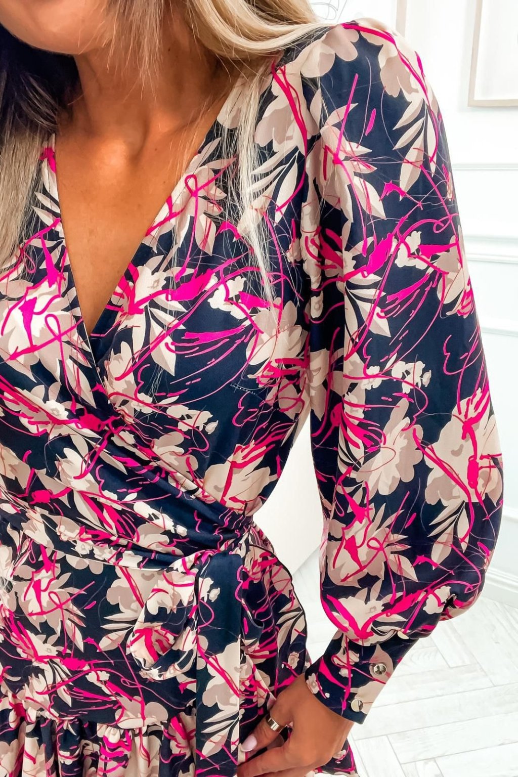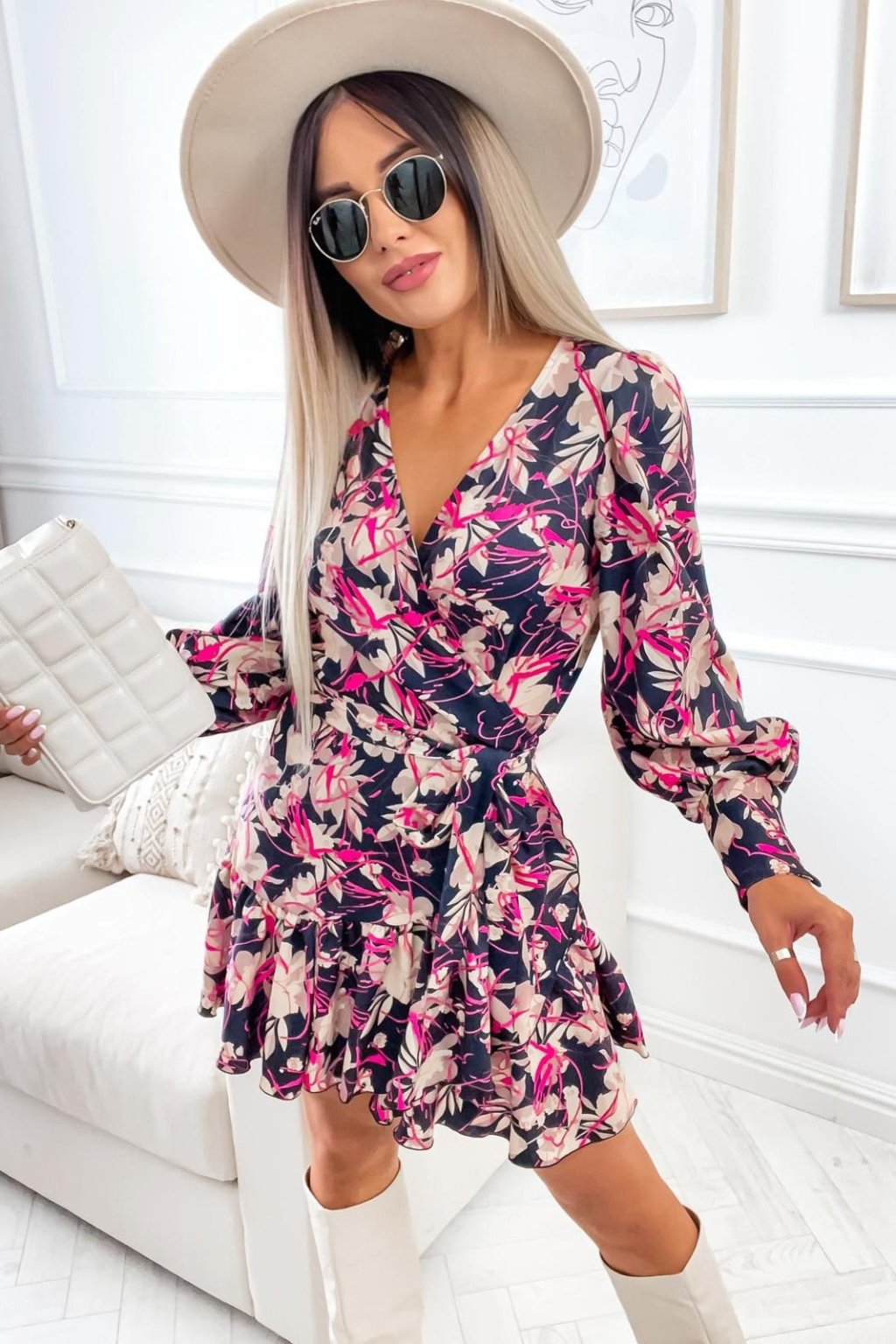 Dámske krátke šaty s kvetinovým vzorom. Materiál: 95% viskóza, 5% elastan. Farba: fuchsiová.