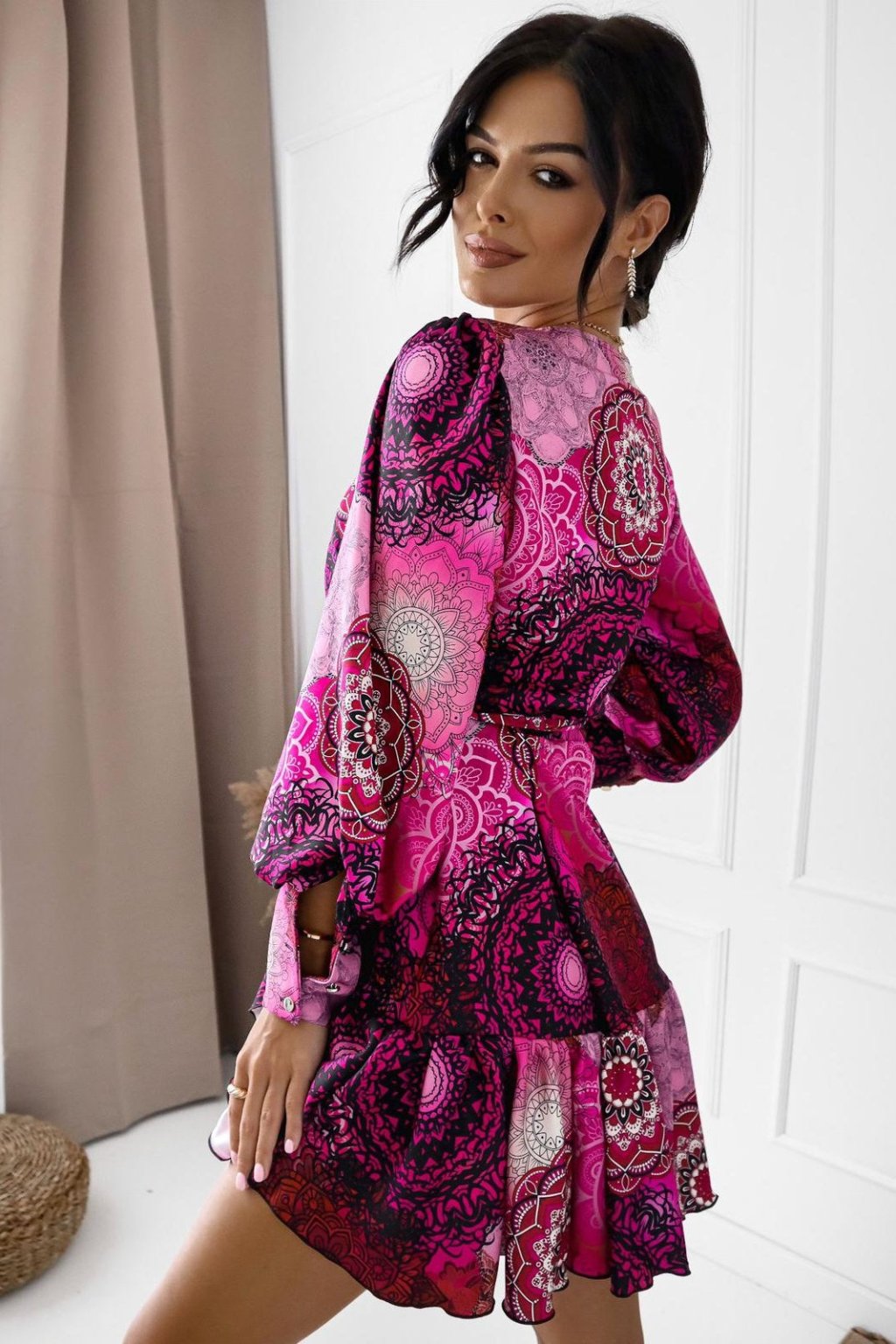 Dámske krátke šaty s ružovým Boho vzorom. Materiál: 95% viskóza, 5% elastan. Farba: ružová.