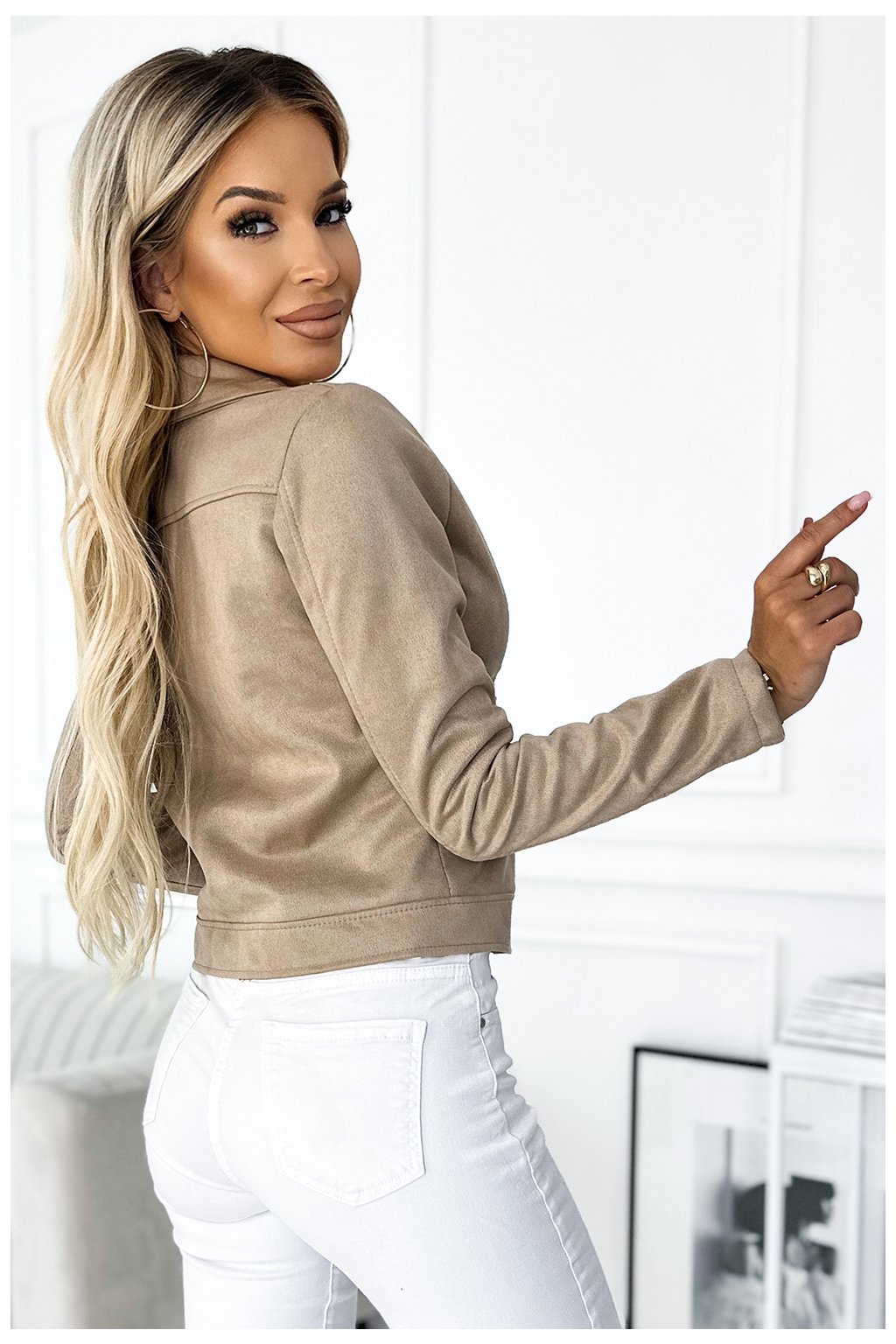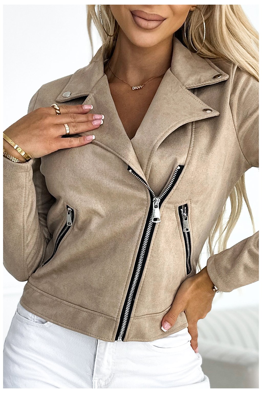 481-1 Semišová bunda s dlhým rukávom a zipsom - béžová