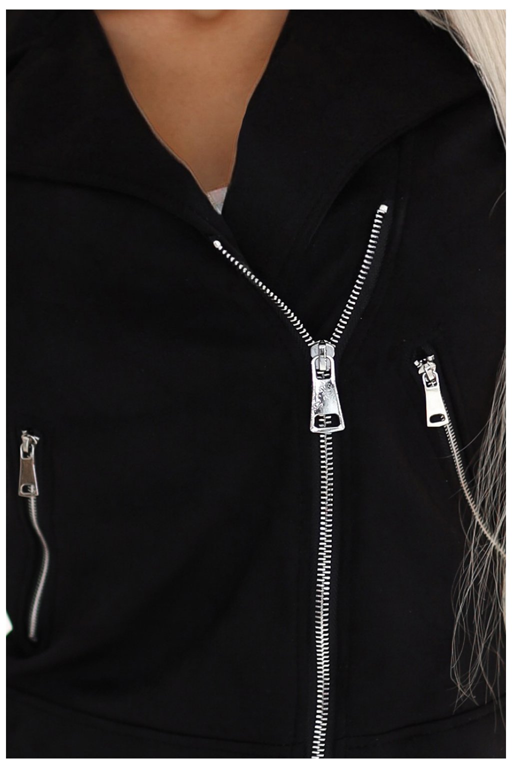 481-2 Semišová bunda s dlhým rukávom a zipsom - čierna
