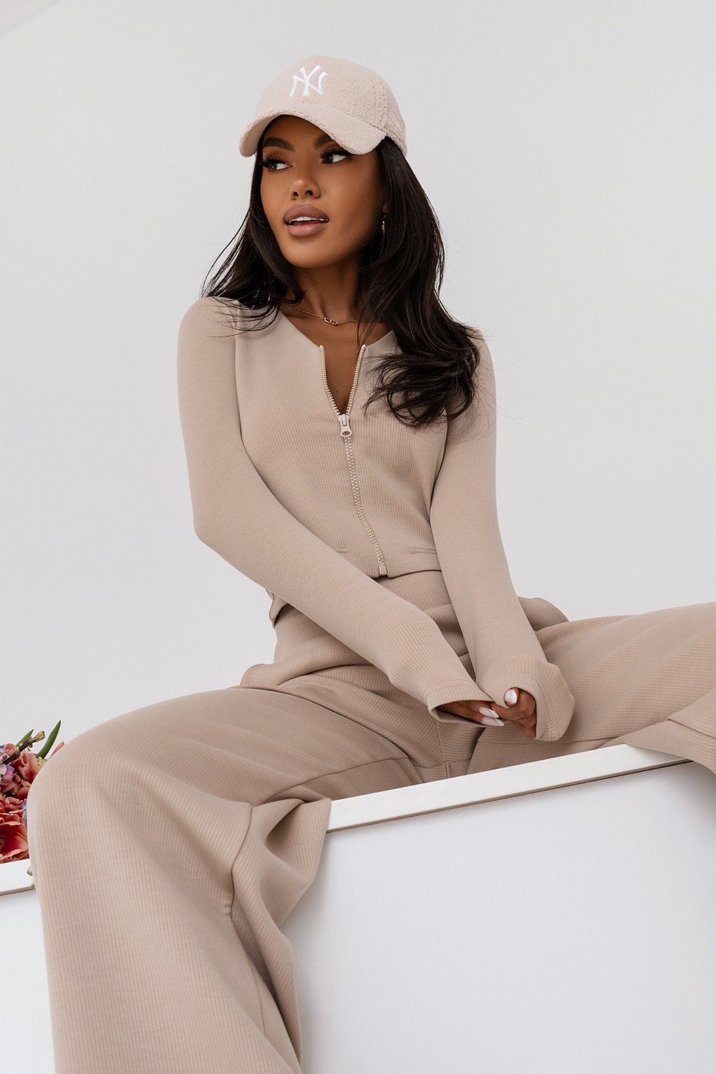 Štýlová dámska súprava. Materiál: 95% viskóza, 5% elastan. Farba: béžová.